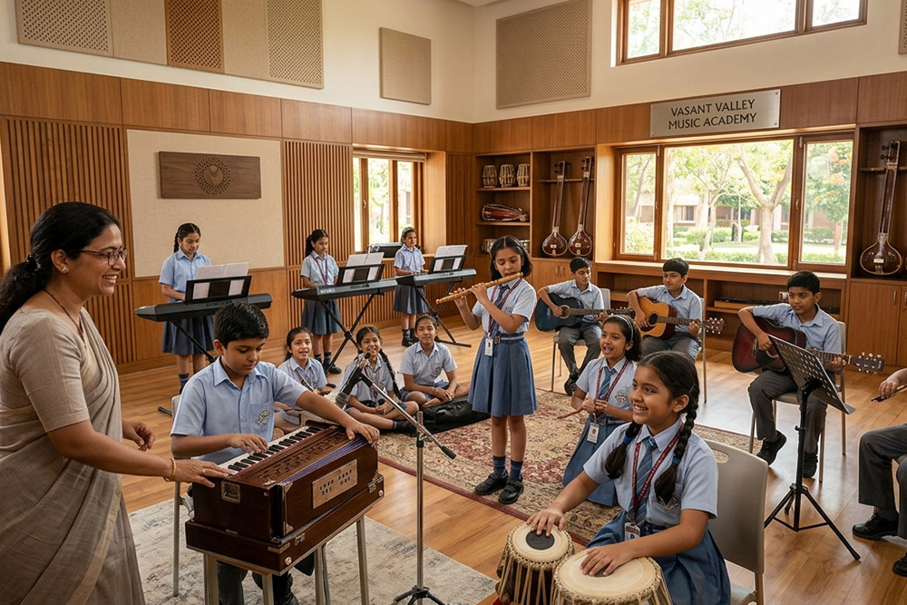 Instrumental learning in Keyboard, Guitar, and Tabla to develop musical talent and discipline.